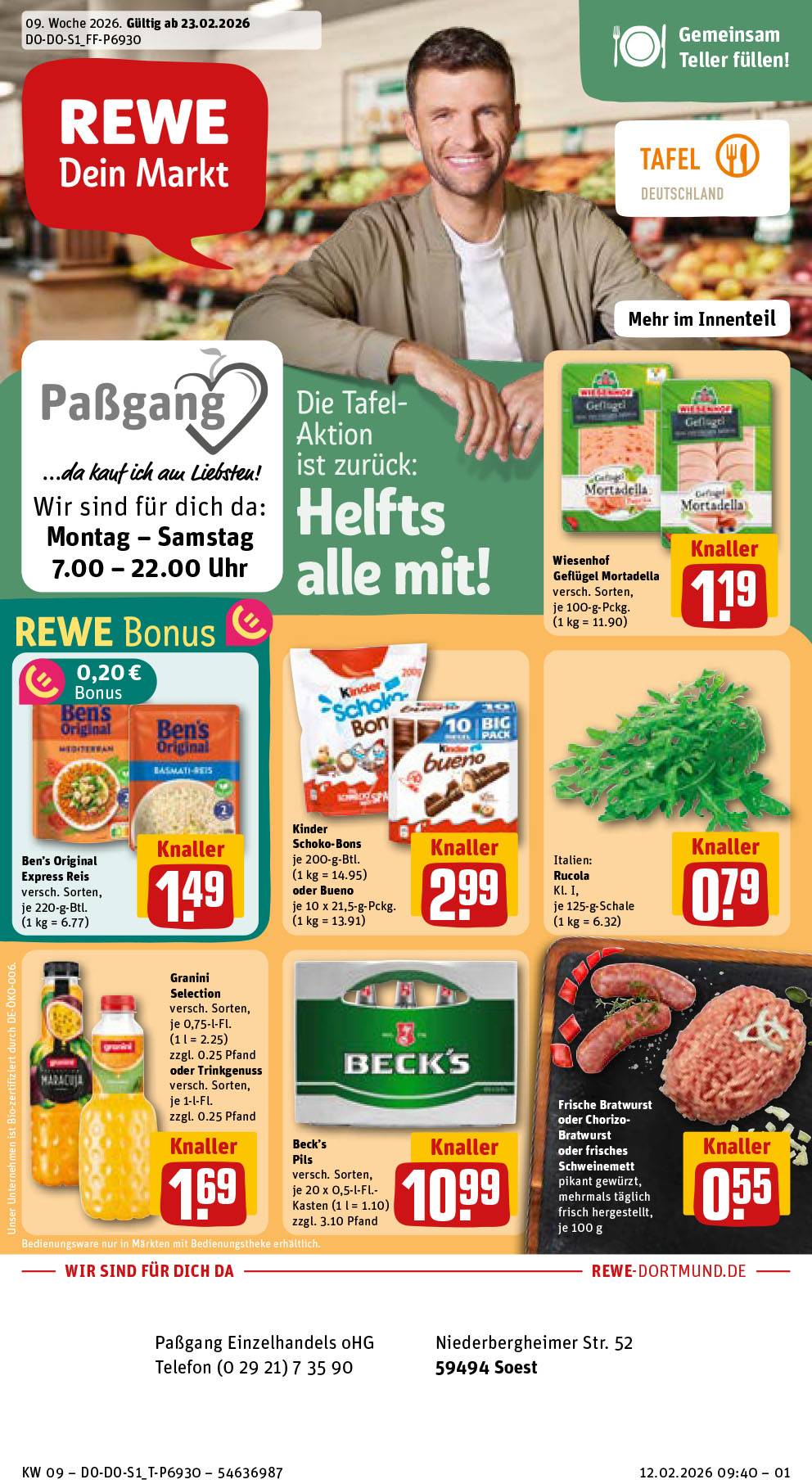 Schön, Dich bei uns begrüßen zu dürfen! Einkaufen bei REWE-Paßgang bedeutet für Dich immer wieder Neues entdecken, Inspirationen für Deine Küche und eine ganz besondere Vielfalt. Qualität und Frische ist uns ein ganz besonderes Anliegen! Sollte Dir irgendein Produkt fehlen, so spreche uns doch gerne an – denn wir freuen uns, wenn Du sagst "da kauf ich am liebsten!"
