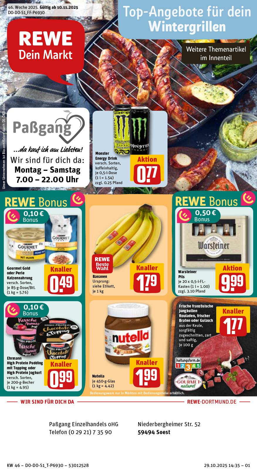 Schön, Dich bei uns begrüßen zu dürfen! Einkaufen bei REWE-Paßgang bedeutet für Dich immer wieder Neues entdecken, Inspirationen für Deine Küche und eine ganz besondere Vielfalt. Qualität und Frische ist uns ein ganz besonderes Anliegen! Sollte Dir irgendein Produkt fehlen, so spreche uns doch gerne an – denn wir freuen uns, wenn Du sagst "da kauf ich am liebsten!"